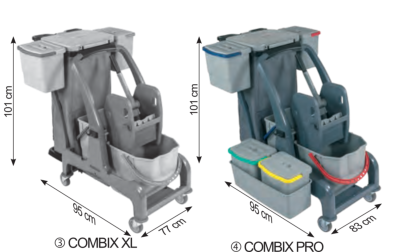 Verschließbarer Reinigungswagen in zwei Ausführungen.Der Matrix, wahlweise mit Mopp-Presse oder Mopp-Boxen, besticht durch perfekte Verarbeitung, eine äußerst solide und robuste Bauweise, sowie ein hervorragendes Preis-Leistungs-Verhältnis.Der extra große Innenraum verfügt über drei ausziehbare Wannen und ein Ablagegitter und bietet vielseitigen Stauraum für die Aufbewahrung von Reinigungsmittel oder andere Utensilien. Die abschließbare Türe gewährleistet maximale Sicherheit im Objekt und garantiert jederzeit ein modernes und dezentes Erscheinungsbild. Dank der großen gummierten 100 mm Lenkrollen, lässt sich der Matrix auch bei voller Ladung jederzeit mühelos und sicher bewegen. Die	hinteren Lenkrollen verfügen über zwei einzeln arretierbare Feststellbremsen und sichern den Matrix beim Abstellen vor ungewolltem Wegrollen.